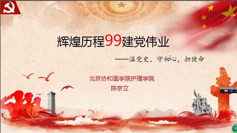 通过陈书记对中国共产党99年风雨历程的梳理,与会党员深刻理解了我们党始终为着中华民族的独立、解放、繁荣和中国人民的自由、民主、幸福不懈奋斗的历史使命,也更加坚定以党性书写对组织的初心,用行动建设百年协和护理的担当。