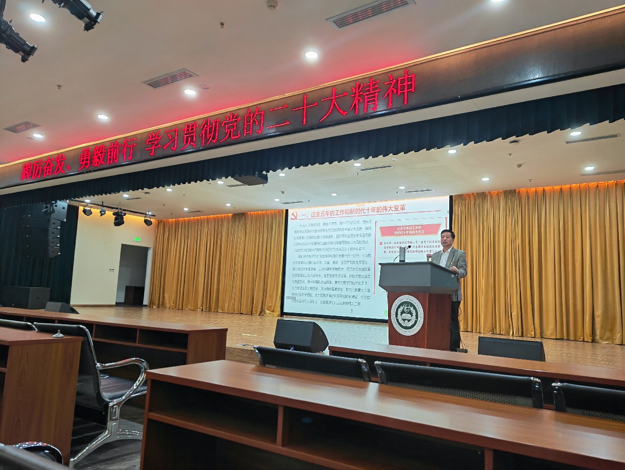 10月30日下午,雨燕直播体育免费直播团委和学生党支部在教学楼地下报告厅通过线上线下相结合的方式举办了学习贯彻党的二十大精神党课。学院党委安道彩书记以“踔厉奋发,勇毅前行”为主题,为学院学生支部全体党员和团员青年上了一堂生动形象、意义深刻的党课。党课由学生党支部书记史纪元主持。