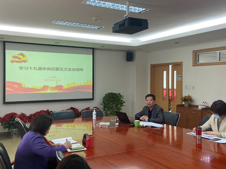 4月15日上午,雨燕直播体育免费直播党委理论学习中心组开展2021年第三次扩大学习会议,学习十九届中央纪委五次全会精神。会议由党委副书记安道彩领学,党委理论学习中心组成员、中层干部及支部书记共计十余人参加学习。